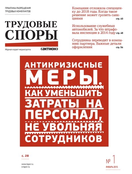 Журнал "Трудовые споры" - это издание для юристов компаний, адвокатов, кадровиков, бухгалтеров и всех специалистов, которые регулируют трудовые отношения в компании. Лучшие эксперты по трудовому праву рассказывают о том, как минимизировать риск возникновения трудового конфликта, как построить выигрышную стратегию защиты, как повернуть позицию суда в свою сторону, если дело дошло до суда. В каждом номере - десятки трудовых споров, разобранных до мелочей, а также пошаговые алгоритмы проведения в компании кадровых процедур с образцами документов. Подписчики журнала получают доступ к Академии Юриста компании и могут бесплатно пользоваться самой большой коллекцией полезных видеолекций для юристов, с которыми каждый сможет стать настоящим профессионало