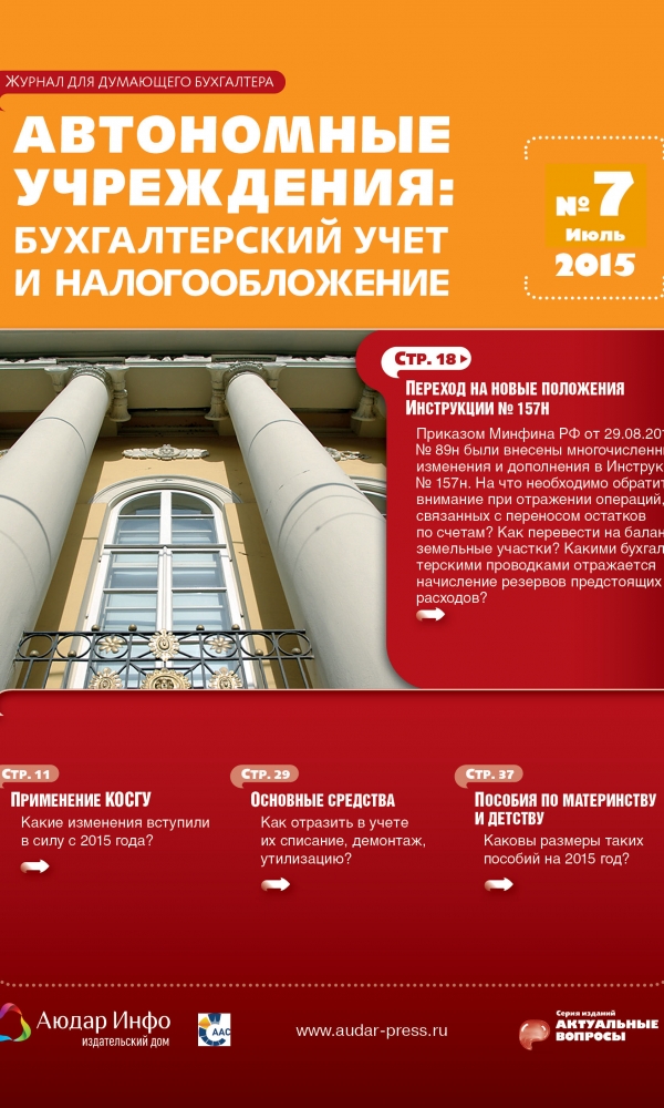 В издании освещаются актуальные темы, последние изменения в законодательстве, приводятся разъяснения специалистов органов гос.власти, обзоры новостей, приводятся примеры, корреспонденции счетов.