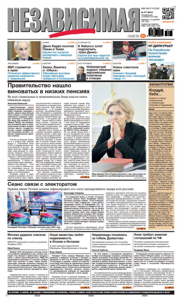 Ежедневное общественно-политическое издание. Рассказывает о событиях и людях влияющих на общество и реально определяющих возможности политического, экономического и культурного развития страны.
